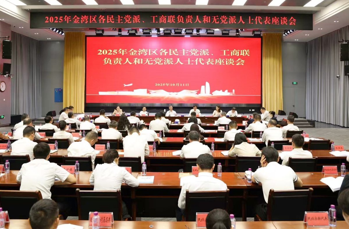 10月11日,2025 年金湾区各民主党派、工商联负责人和无党派人士代表座谈会召开,传达学习贯彻习近平总书记在党外人士座谈会上的重要讲话精神,听取区各民主党派、工商联负责人和无党派人士代表的意见建议,进一步汇聚统一战线广大成员的智慧和力量,共同推进中国式现代化金湾实践。区委书记梁耀斌主持会议并讲话,区委副书记、区长刘军通报2025年1—8 月金湾区经济社会发展情况,区政协主席陈国政出席会议。