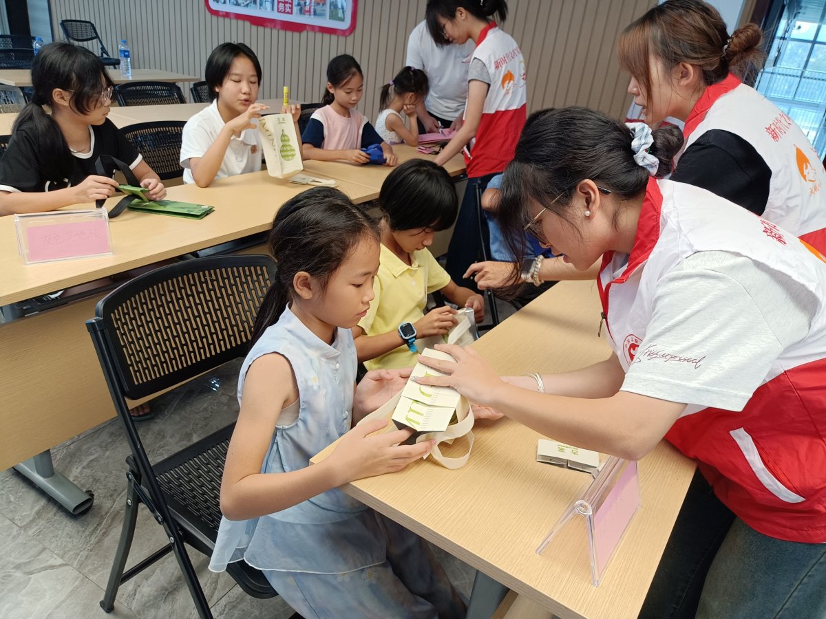 “变废为宝”手工环节中,青少年化身“环保设计师”,将废旧纸袋、塑料瓶等材料,巧妙改造为花瓶、笔筒等实用物品。创意实践让废弃物焕发新生,也让孩子们体会到资源再利用的乐趣。