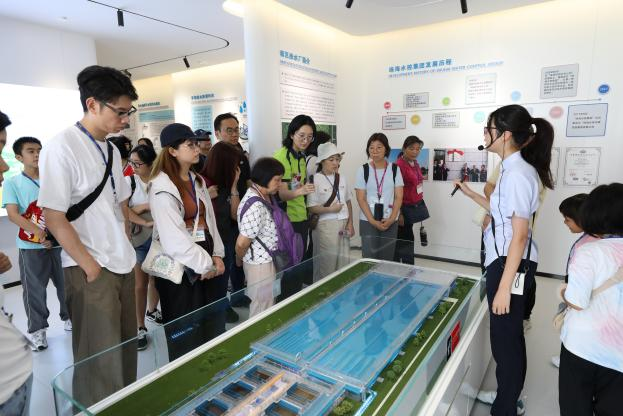 随后,参观团前往南区水厂,首先参观节水展厅,了解水资源现状与节水知识。接着深入水厂,实地观摩制水流程。在水厂工作人员陪同下,澳门市民沿着原水进厂、混凝、沉淀、过滤、消毒到进入清水池等环节的生产线,亲眼见证每一滴自来水的生产过程。
