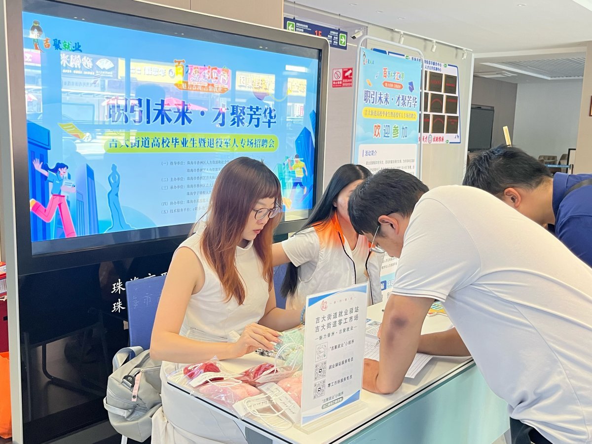 10月14日下午,吉大街道高校毕业生暨退役军人专场招聘会在珠海市高技能人才公共实训中心举办,活动聚焦离校两年内未就业高校毕业生、退役军人等重点群体,通过“现场招聘+直播带岗+AI智能服务”多维模式,活动直播观看量达4235人次,评论互动563条,点赞量2613次,收到127条求职咨询,达成就业意向人数87人。