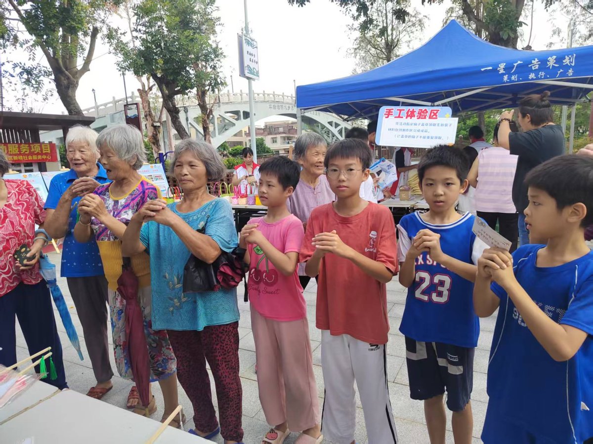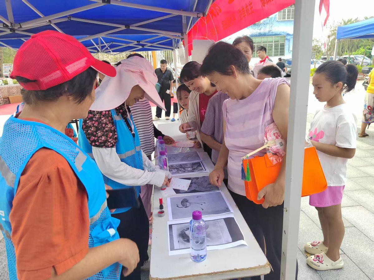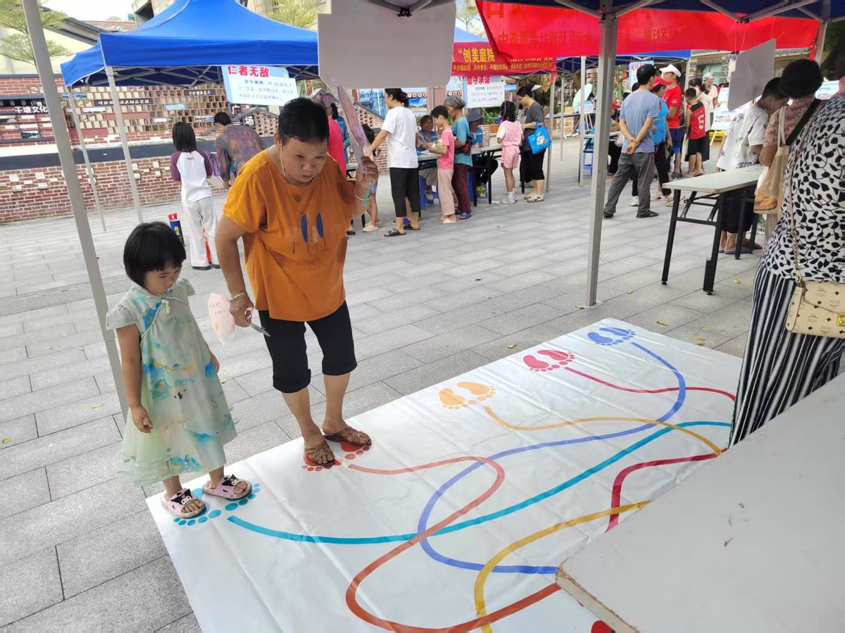 活动现场,居民们在签到处领取定制家庭教育扇子及集章挑战卡,并通过参与家风主题互动游戏完成挑战、兑换奖品。