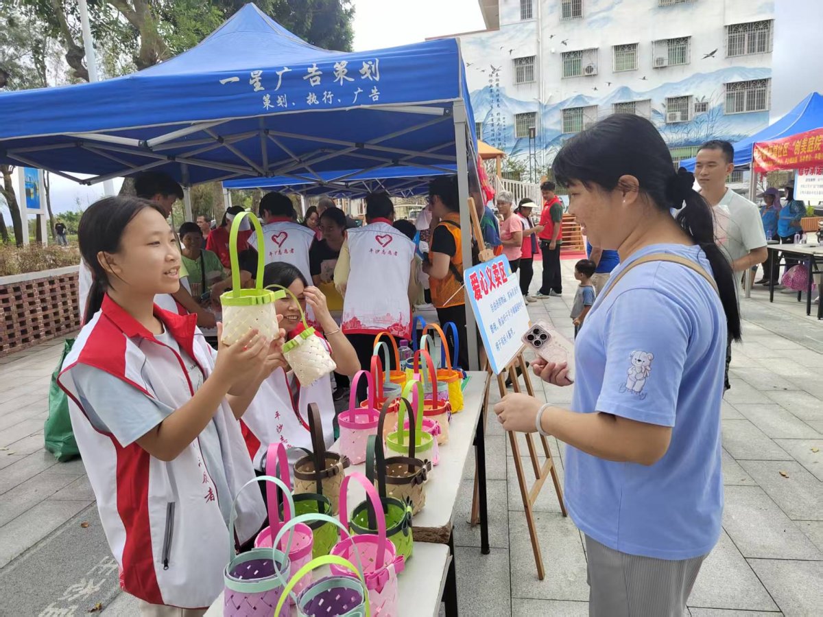 此外,手工花篮义卖摊位也吸引众多居民驻足。该手工花篮均由平塘社区巾帼志愿服务队的志愿者们手工制作,且义卖所得资金将全部捐赠给平沙镇残疾人社区康园中心,进一步在社区营造热心公益的氛围,弘扬“奉献、友爱、互助、进步”的志愿精神。