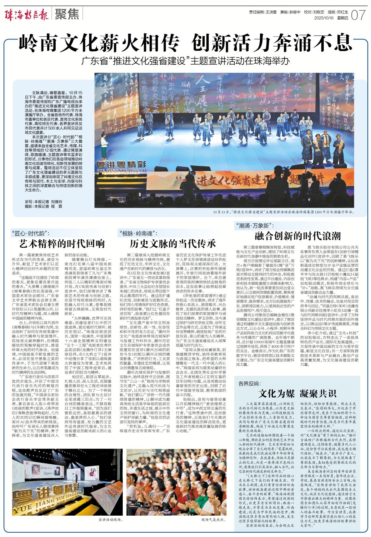 第三篇章着眼媒体转型、科技赋能与文化产业创新,描绘了岭南文化在新时代浪潮中焕发的勃勃生机。
