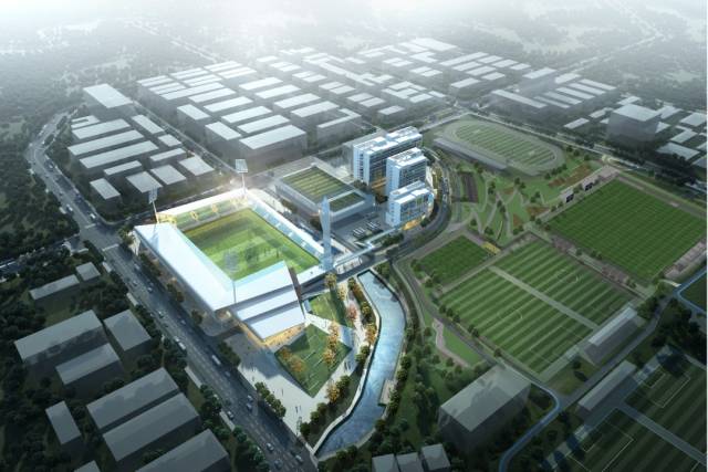 市青少年足球训练基地赛后将与社区绿地融合,打造体育休闲复合空间;