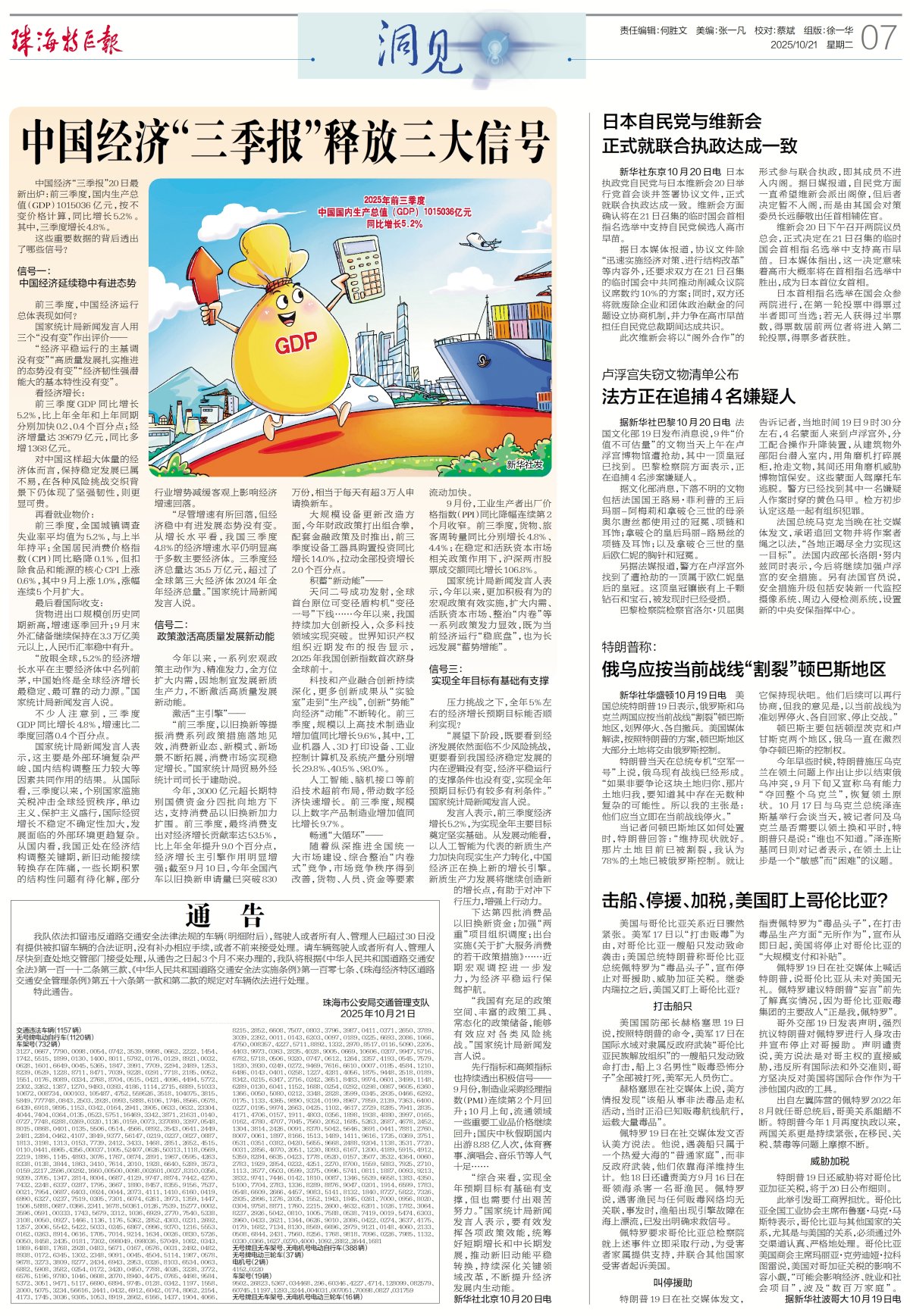 “尽管增速有所回落,但经济稳中有进发展态势没有变。从增长水平看,我国三季度4.8%的经济增速水平仍明显高于多数主要经济体。三季度经济总量达35.5万亿元,超过了全球第三大经济体2024年全年经济总量。”国家统计局新闻发言人说。