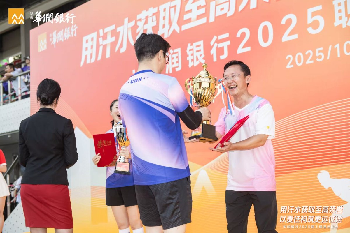 10月19日,珠海华润银行2025职工田径运动会在中山市兴中体育场圆满落下帷幕。珠海分行代表队凭借出色的整体发挥与顽强的拼搏精神,以总分第一的优异成绩,从众多参赛队伍中脱颖而出,勇夺团体冠军,充分展现了珠海分行昂扬向上的精神风貌和强大的团队凝聚力。