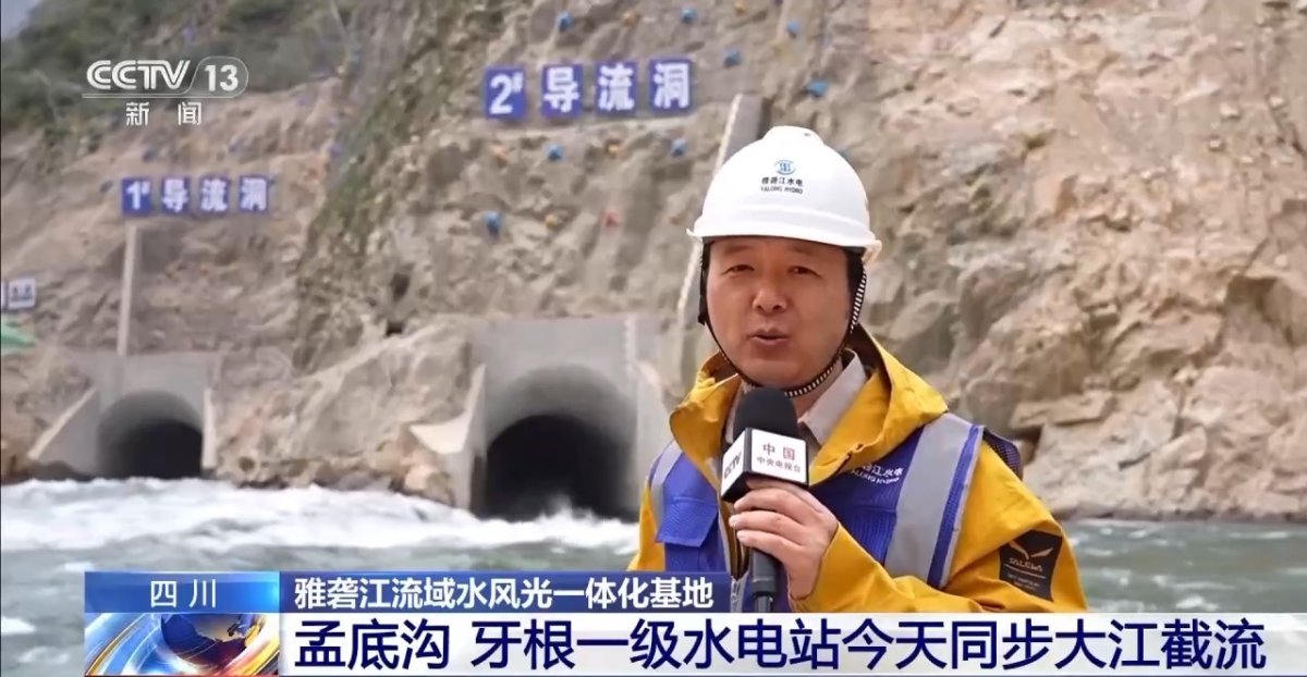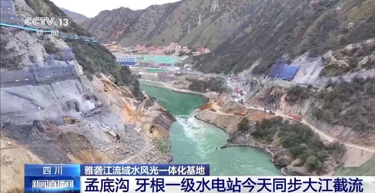 孟底沟水电站位于四川省甘孜州九龙县和凉山州木里县交界的雅砻江干流上,是雅砻江流域在建最大的水电项目,也是基地雅中项目群的支撑电源,电站装机240万千瓦。牙根一级水电站位于四川省甘孜州雅江县境内,是四川省最大水库电站——两河口水电站的反调节电站,电站装机30万千瓦。大江截流是水电站建设的第一个关键节点,两座电站同步大江截流,实现了整体效益的最大化,标志着雅砻江流域梯级水电开发进入了更加成熟、高效的新阶段。