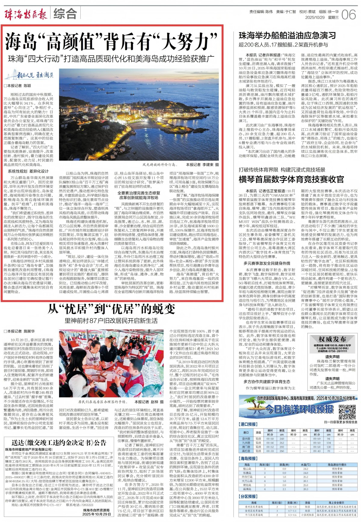 刚刚过去的国庆中秋假期,万山海岛实现旅游综合收入同比大幅增长34.1%。众多网友直呼“心向往之”,争相打卡。海岛为何有如此大的魅力?日前,中共广东省委全面深化改革委员会办公室发文,将珠海“四大行动”着力打造高品质现代化和美海岛成功经验纳入《基层改革典型案例选辑》,明确在更大范围复制推广。这其中的经验正蕴含着海岛魅力的答案。