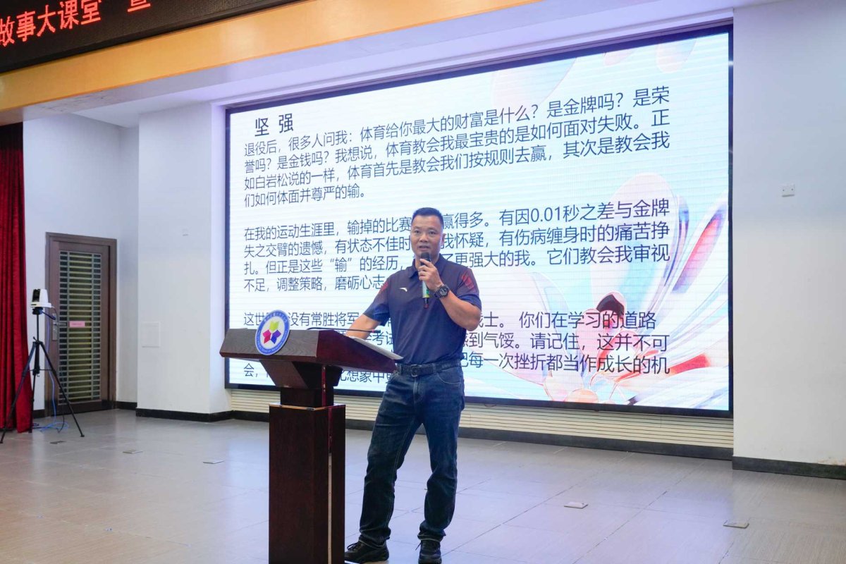 11月7日,由珠海市档案馆、香洲区教育局联合主办,香洲区第二十三小学承办的2025年第四期“档案故事大课堂”暨香山大思政活动在该校举行。本次活动以“冠军档案进校园,青春逐梦迎全运”为主题,特邀珠海本土体育冠军、“亚洲蛙王”曾启亮走进校园,与师生共话体育精神与奋斗人生。