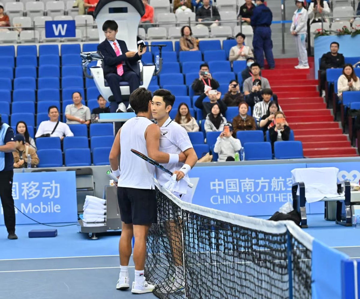 18日,男单上半区四分之一决赛中,商竣程3:6、6:4、6:4逆转头号种子布云朝克特,从团体赛到单项赛,他在十五运会已经取得了一波八连胜。半决赛商竣程将对阵周意,这将是两人继团体半决赛之后再度相遇。周意本轮同样是逆转获胜,他以3:6、6:1、6:3战胜了巴黎奥运会混双银牌、杭州亚运会男单金牌得主张之臻。下半区的两位选手则都是直落两盘过关,其中香港选手黄泽林7:5、6:0淘汰崔杰,吴易昺6:1、7:6(3)战胜了孙发京。
