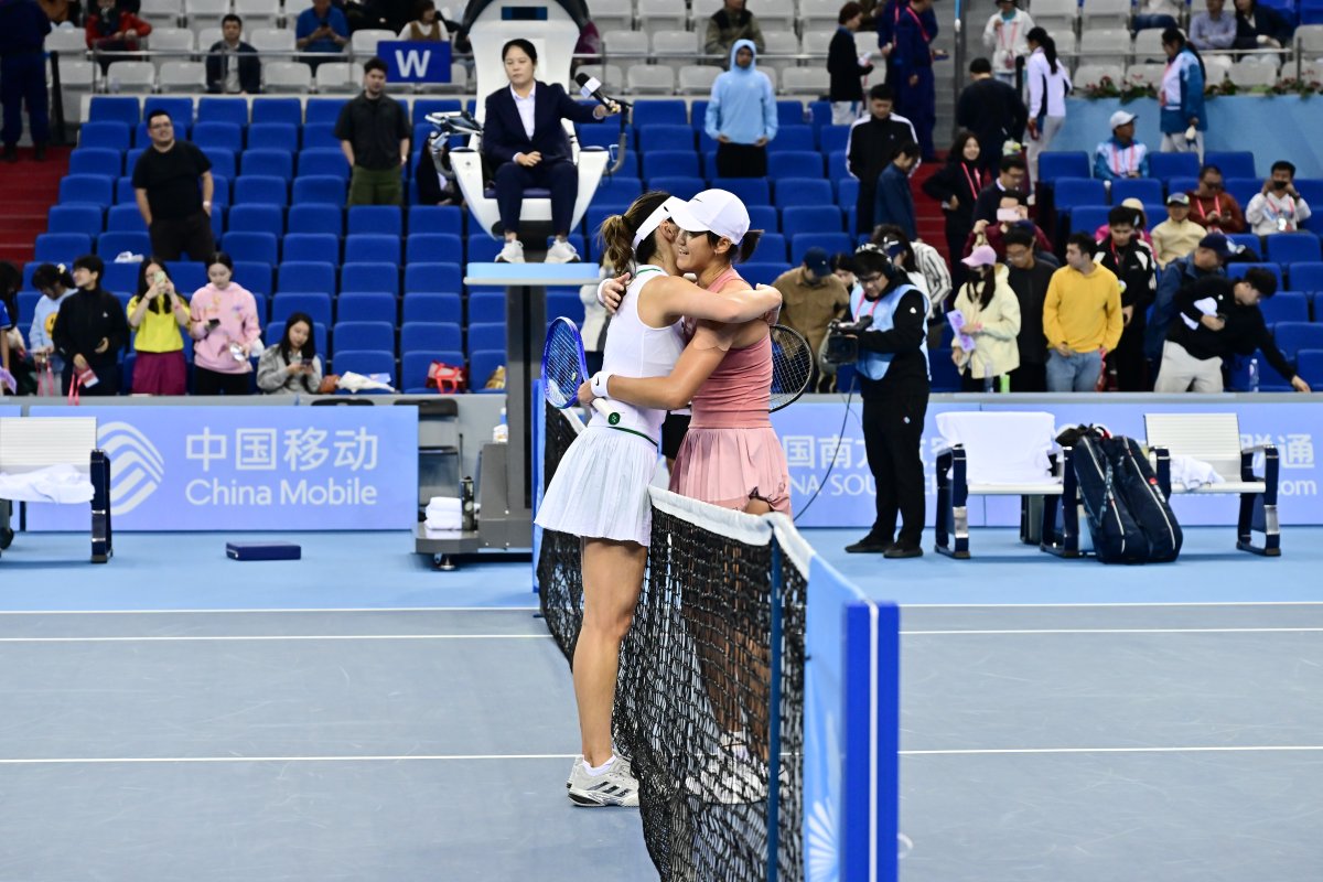 在决胜盘,王欣瑜抓住机会拿下,以6:3、6:7(5)、6:3赢下了这场悬念十足的“左右大战”。一场精彩而激烈的三盘大战后,两位选手在网前热情拥抱,展现出比赛之外的温情一面。半决赛中,王欣瑜将对阵3号种子朱琳,后者7:5、6:2击败了8号种子王雅繁。
