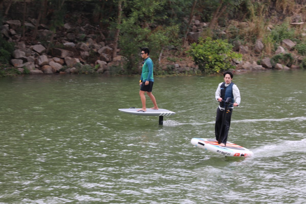 少年们驾驭的电动水翼板,源自海卓菲尔的两款最新研发成果。“我们产品最大的革新在于,即使无风无浪,凭借自主动力系统也能实现水面起飞。甚至在动力推动下逐渐脱离水面,进入‘低空飞行’状态。”公司总裁钱招杰自豪地表示。