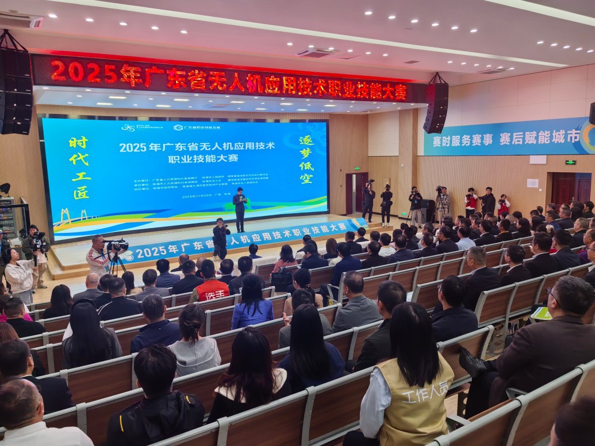 起飞、悬停、穿越障碍、精准投送……11月21日至23日,珠海市技师学院校园上空上演着一场场精彩的“空中竞技”,2025年广东省无人机应用技术职业技能大赛在此拉开帷幕,来自全省21个地市及澳门、横琴、省属院校的25支代表队、135名选手齐聚珠海,角逐总额高达30万元的赛事奖金。作为粤港澳大湾区低空经济领域的重要赛事,本届大赛不仅是技能比拼的舞台,更成为推动区域产业协同、人才培养与创新合作的重要平台。