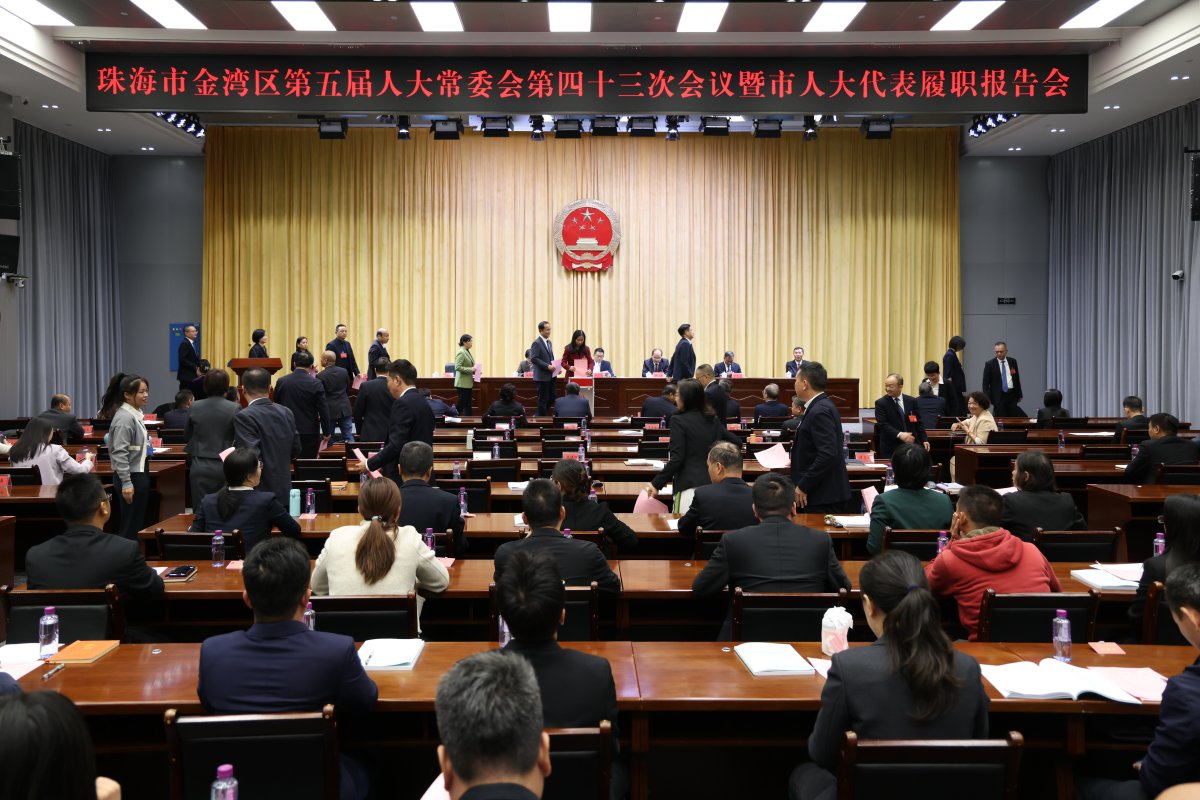 11月24日上午,金湾区第五届人大常委会第四十三次会议召开,56位由金湾区选举产生的珠海市十届人大代表通过现场述职或书面述职的形式,向原选举单位报告履职情况,并接受评议团的现场满意度测评。