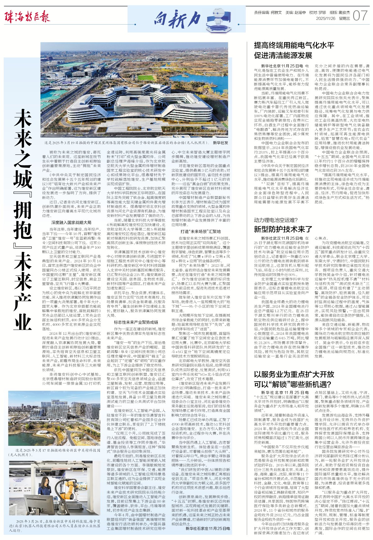《中共中央关于制定国民经济和社会发展第十五个五年规划的建议》对“培育壮大新兴产业和未来产业”作出明确部署,这为雄安新区建设发展进一步指明了方向、提供了新动力。