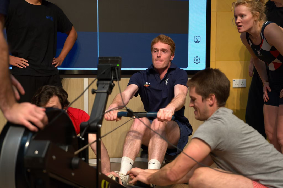 活动邀请来自牛津大学、剑桥大学、耶鲁大学及哈佛大学四所世界名校的赛艇队成员齐聚澳门科技大学校园,与学校师生交流互动,并与澳门科技大学校队赛艇队进行划船机竞赛,现场气氛热烈。