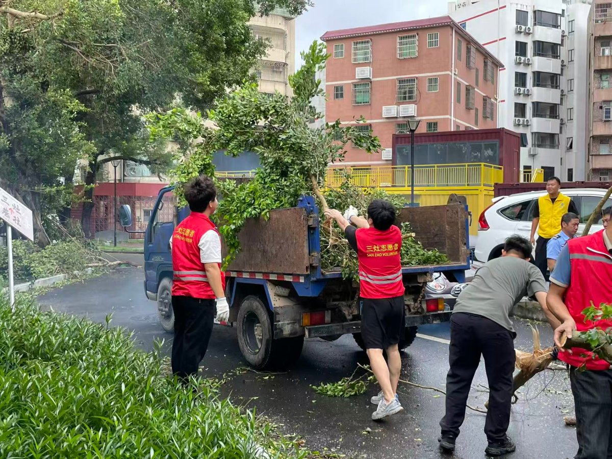 台风“桦加沙”过境后,60名志愿者冒雨集结,锯树枝、清垃圾,200多个小时连续作战,让台风过境后满是泥点的大地上,写满了“青春”二字。