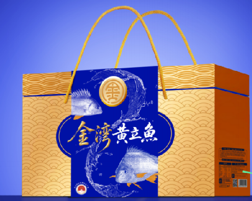 新包装图案深度融合金湾的海洋文化元素与黄立鱼的产品特性,以“珍馐之礼,东方之韵”为核心理念,融合中国传统文化元素与现代包装图案语言,突出国家地理标志专用标志,清晰标注产品信息,传递金湾黄立鱼高品质、健康鲜美的品牌形象。