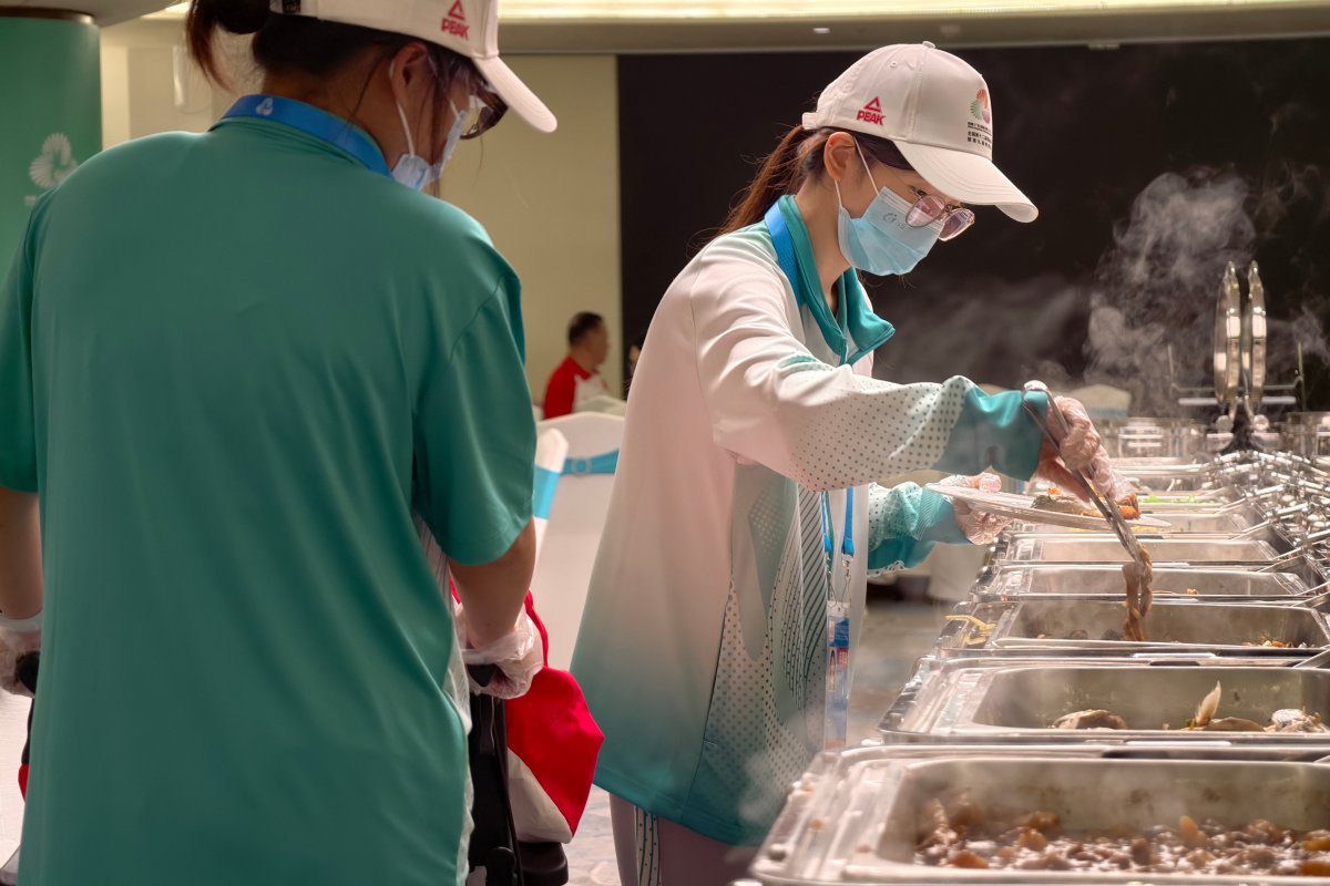 面对琳琅满目的餐食,她必须快速记住每道菜的名称、口味和特点,精准地转达给运动员。她需要俯身、侧耳,确保每一位选手,尤其是残障运动员,能便捷、舒心地享用饭菜。“偶尔会手忙脚乱,但还好有伙伴们互相搭把手,总能顺利解决。”石芷晴笑着说。