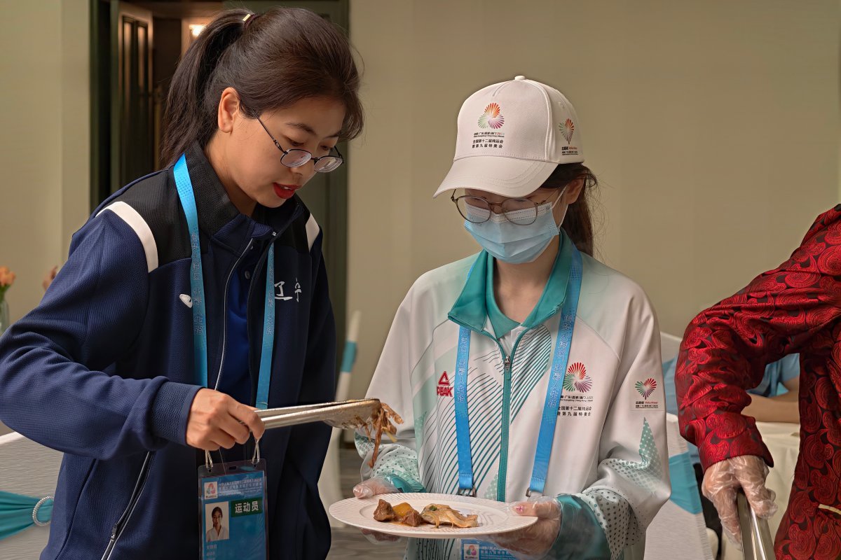 这就是石芷晴在残特奥会上最寻常的工作瞬间。她的“赛场”不在棋枰边,而在运动员餐厅里。