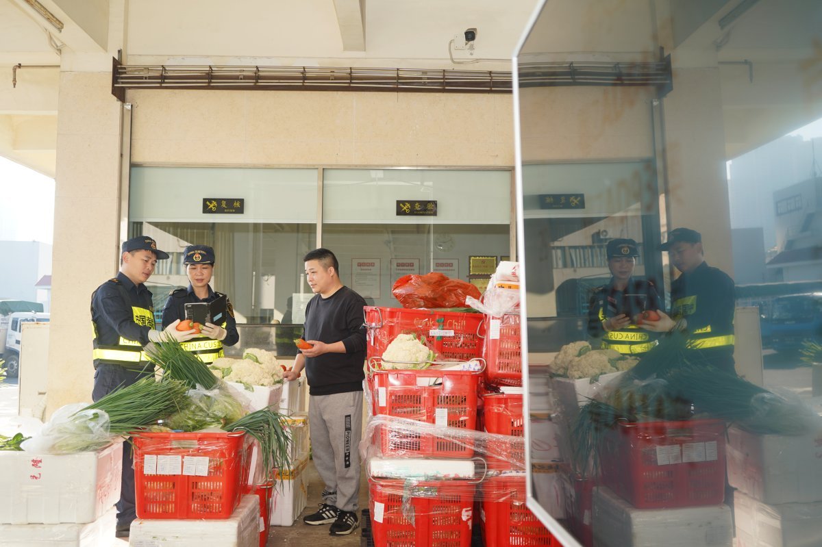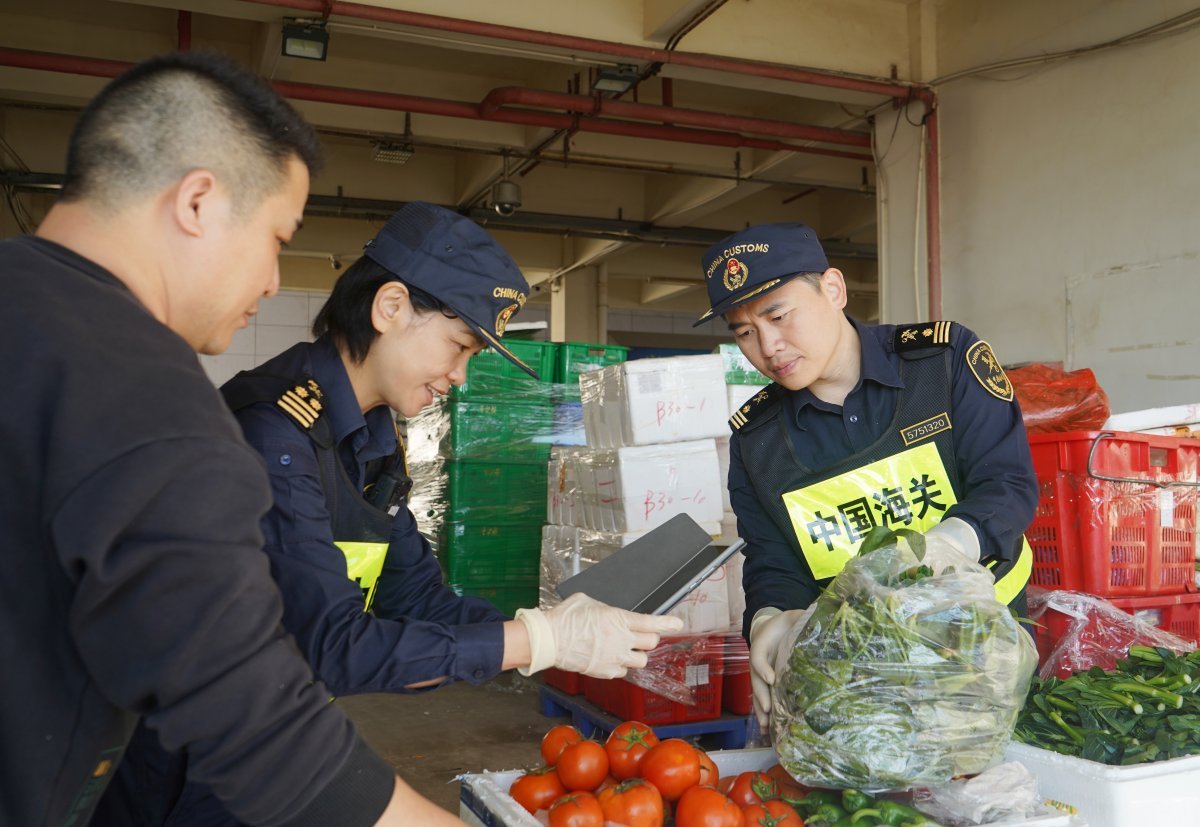 “5分钟!车辆从进场到出场,只要5分钟。”珠海市一源进出口有限公司经理杨波表示,“我们提前做好集报清单,由海关审单、验放。”自2024年8月起,拱北海关实施“属地综合评定+口岸集中申报”监管新模式,企业只需每月在拱北口岸开展一次“集中申报”,不再需要逐票跑海关。此举降低企业运营成本的同时,保障了新鲜蔬菜快速安全通关。蔬菜之外,拱北海关还推出供澳冰鲜水产品“三联三同”模式、供澳食用水生动物“检疫前推、合作监管”模式,联合澳门市政署支持合规农产品高效通关、抢“鲜”上市。