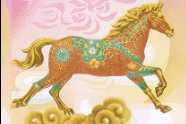 纪念钞正面主景为马的造型图案,上方为中华人民共和国国徽、“中国人民银行”、篆书“马”字印章,下方依次为光彩光变面额数字“20”与汉字“贰拾圆”、动感全息图案、透明视窗、盲文面额标记和冠字号码。