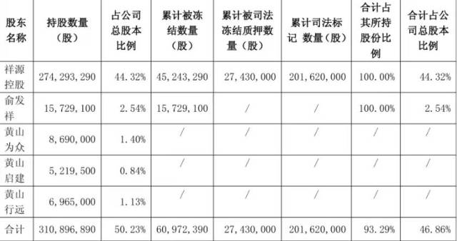 在债务风波和工作组进驻的同时,祥源系核心股权已被大量冻结。12月16日,交建股份率先披露,控股股东祥源控股及实控人俞发祥所持公司股份已被司法冻结、轮候冻结及司法标记。