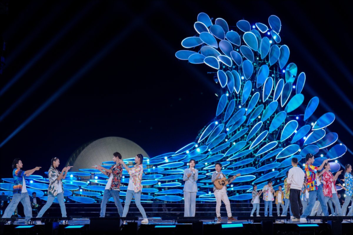 除了专业团队外,珠海市民代表也在舞台上传递着温暖力量。在“乐游湾区”环节,从事中华白海豚保护相关工作20余年的陈希,与主持人探访淇澳岛红树林保护区及情侣路,并演绎《浪花一朵朵》。“看到中华白海豚日益受到社会关注,公众对这一珍稀物种的保护意识也越来越强,我们感到十分欣慰。”
