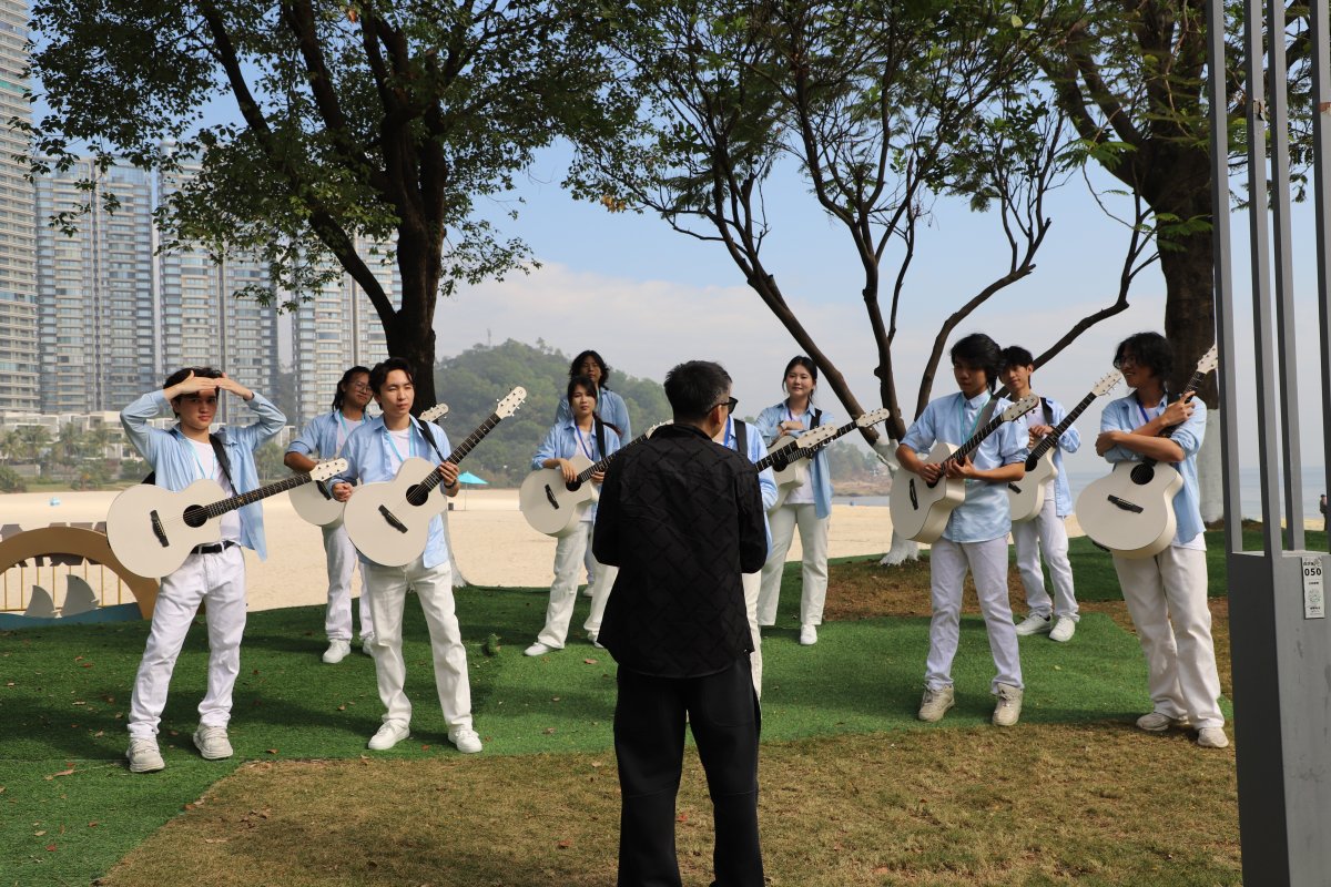继2021年首度参演央视总台新年音乐会后,珠海艺术职业学院再度受邀登上舞台。该学院派出50名学生参与《香江组曲》《蔚蓝畅想曲》《侠义组曲》等9个节目的录制。40人的合唱团队精细打磨每首曲目的和声与姿态,10名吉他手利用碎片时间密集加练外景节目《浪花一朵朵》。当导演组给出“专业、敬业、能打硬仗”的高度评价时,许多同学热泪盈眶。