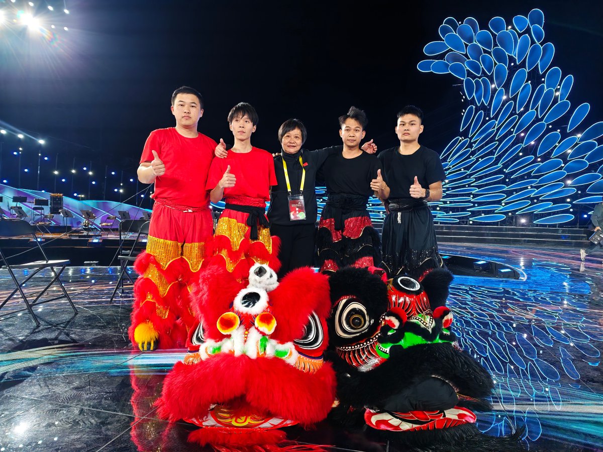 在《铁血丹心》《一生有意义》《世间始终你好》的伴奏下,珠海市舞龙舞狮运动协会代表队的一红一黑两头醒狮惊艳亮相。该协会会长卓奕君介绍,队员们精准把控对望、传情、腾跳、俏皮展示等动作时机,让狮舞与侠义主题深度融合。“广东是醒狮之乡,能登上央视舞台是每一位南狮人的骄傲。”