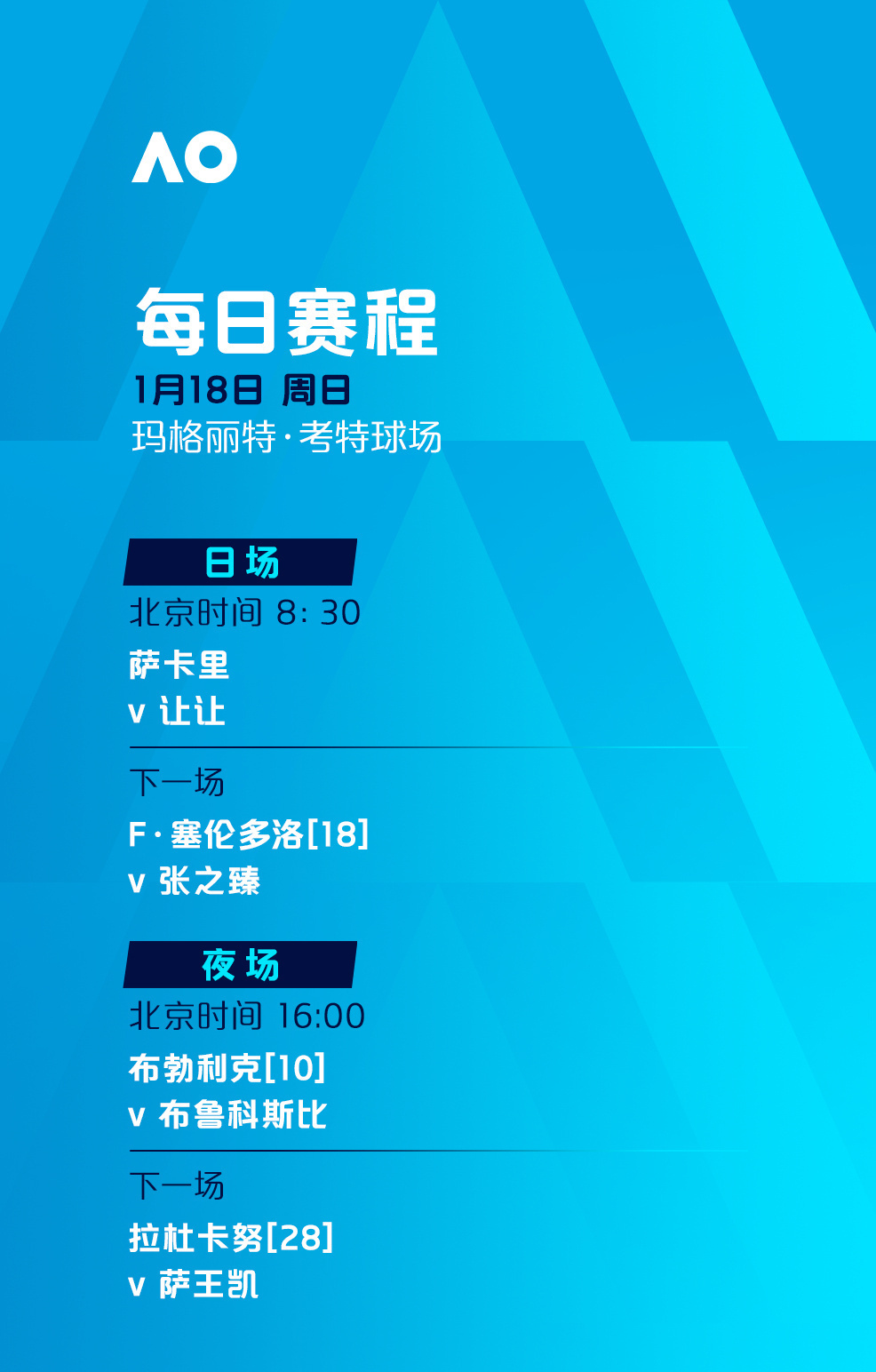 - 张之臻在网球联合杯混合团体赛中复出并展现积极状态。经历伤病困扰的2025赛季后,他的世界排名有所下滑,本届澳网首轮他将迎战18号种子、阿根廷选手塞伦多洛。