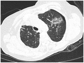 本次接受治疗的是一位82岁高龄患者,既往因右肺癌接受过肺部部分切除手术,此次又发现左上肺19*14mm混合性结节。经北京理工大学附属医院(珠海市人民医院)肺结节专病中心多学科专家会诊,考虑为早期肺癌。由于患者年龄大、既往有肺部手术史,传统外科手术风险较高。经与患者及家属充分沟通并取得同意后,医疗团队决定为其施行机器人引导下的经皮肺结节微波消融术。