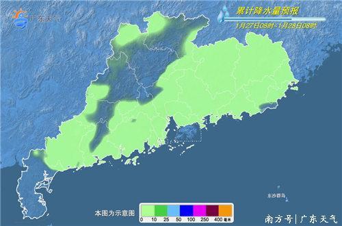 27日,我省大部市县阴天,有小雨局部中雨,雨雾天气能见度低。最低气温:韶关及清远的北部市县7~10℃,珠江三角洲大部、粤东和阳江市县14~17℃,雷州半岛17~20℃,其余市县10~13℃。