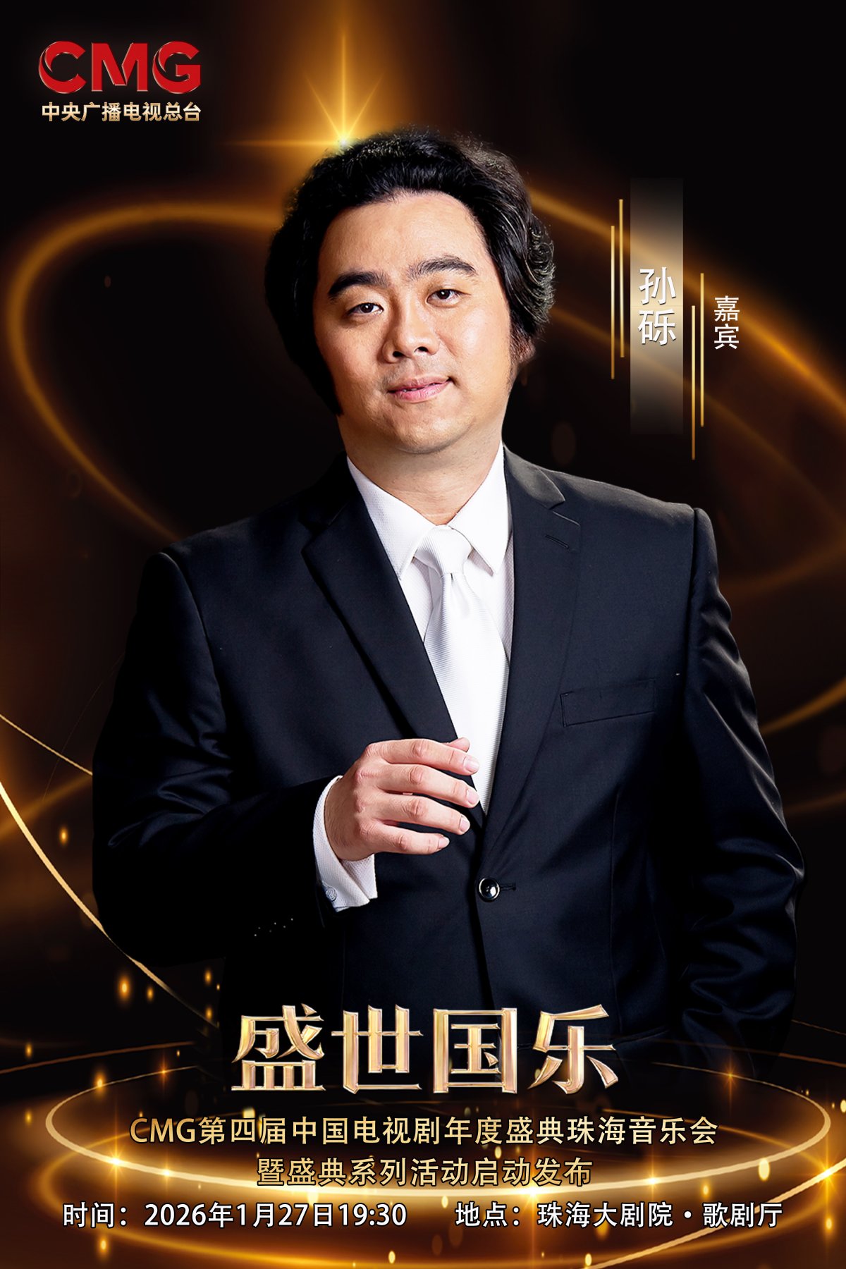 CMG第四届中国电视剧年度盛典珠海音乐会嘉宾阵容公布!醇厚声韵,声动荧屏。1月27日晚,孙砾将亮相《盛世国乐——CMG第四届中国电视剧年度盛典珠海音乐会暨盛典系列活动启动发布》。从歌剧殿堂到国乐舞台,他将以浑厚深沉的嗓音,演绎电视剧经典音乐,敬请关注!