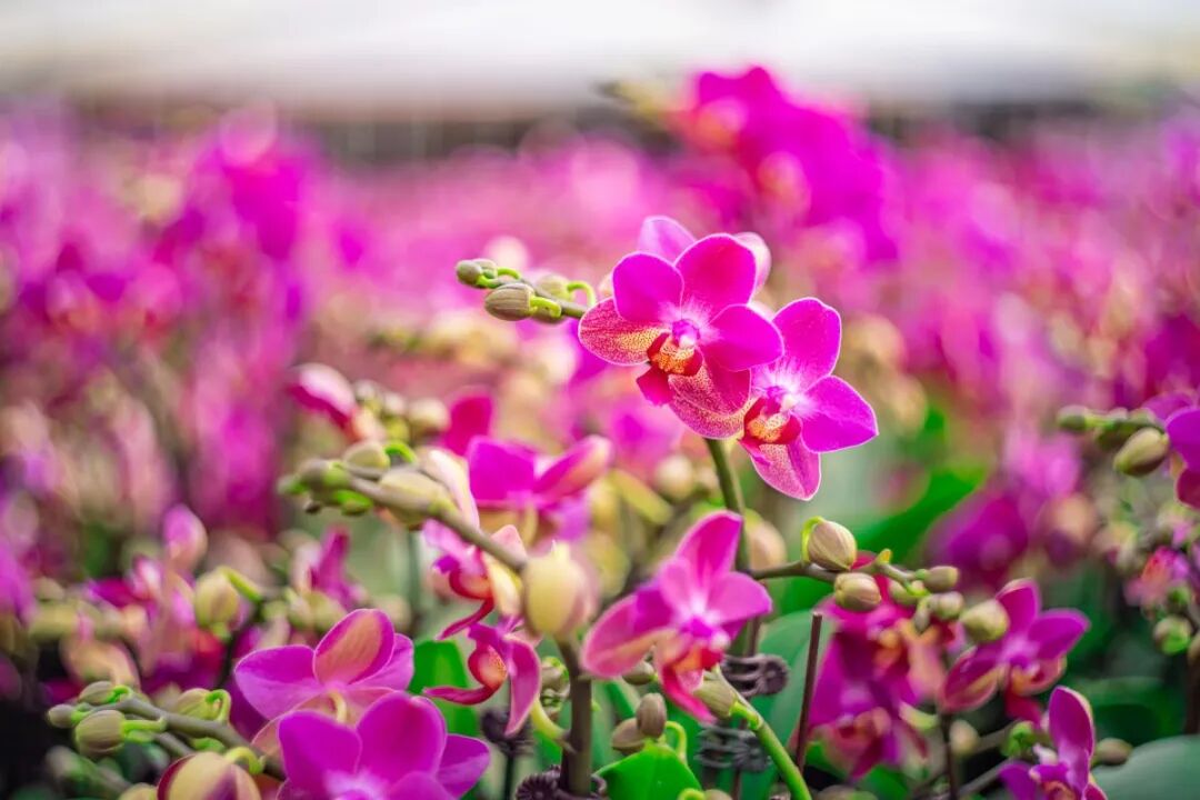 在1.5万平方米的智能温室中,既有“钜宝大粉”“藏宝图”等经典品种,也有新培育的浅蓝、淡紫等柔和色调的“马卡龙”系列,吸引众多客户提前预订。公司生产主管罗东柳介绍,基地通过物联网技术精准调控温、光、水、肥,使蝴蝶兰优品率稳定在90%以上,花期可延长至三个月。