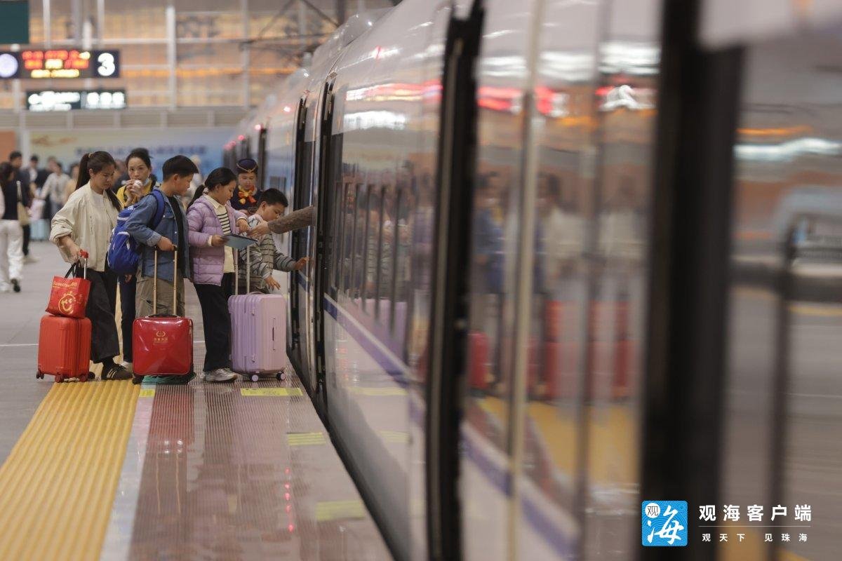 相关数据显示,春节前,珠海站返乡客流表现为学生流、务工流、探亲流交织出行,主要去往北京、上海、湖南、湖北、贵州、广西、四川、昆明、重庆及深圳、肇庆、梅州、潮汕等省市。春节后务工流返程高峰将延后至元宵节过后,表现为探亲流与务工流、学生流错峰出行。