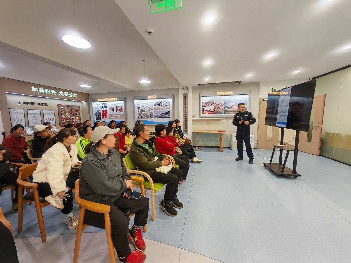 2月3日晚,担杆镇新时代文明实践所联合担杆派出所在该镇居家养老服务中心举办了一场别开生面的反诈宣传讲座,约40名海岛居民、企业职工及老年人到场参与。
