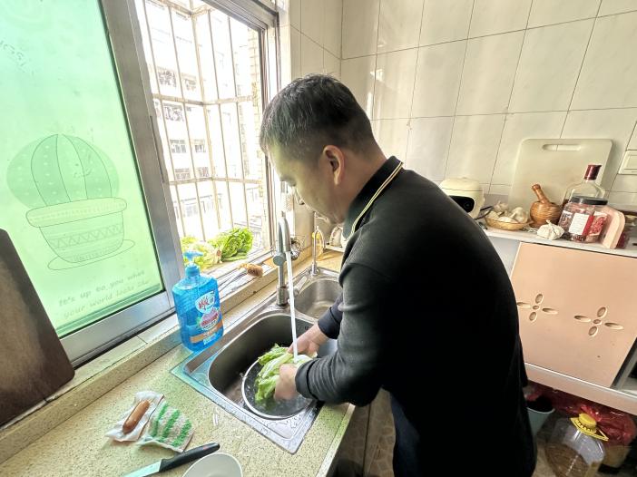 2月13日傍晚时分,家住天宝大厦4楼的董先生拧开厨房水龙头,清流喷涌而出。他麻利地洗菜、淘米,灶台边的热水器随时待命。
