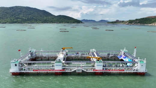 在距离海岸线30公里的广东珠海小蜘洲岛北侧海域,“格盛1号”半潜桁架式养殖平台静静矗立于碧波之上。这座养殖水体超3万立方米的“钢铁岛屿”,是广东“蓝色粮仓”的重要阵地。