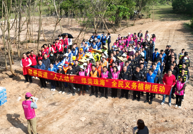 3月11日,团市委、团区委在街道香山驿站打造“珠港澳青年林”,珠港澳三地青少年等约150人携手种下宫粉紫荆100株,用青春浇灌绿色希望。钰海、沿河等社区广泛联动珠海电力设计院、市水务局、市文广旅体局等企事业单位及青年志愿者约100人,在小区绿地、防火带登山口分别种下异木棉、紫花风铃木等苗木,既美化人居环境,又筑牢生态屏障。从青年到长者,从企业到机关,多方力量以不同形式参与到植树护绿中来,在辖区范围内形成了全民爱绿、多元植绿、人人护绿的生动局面。