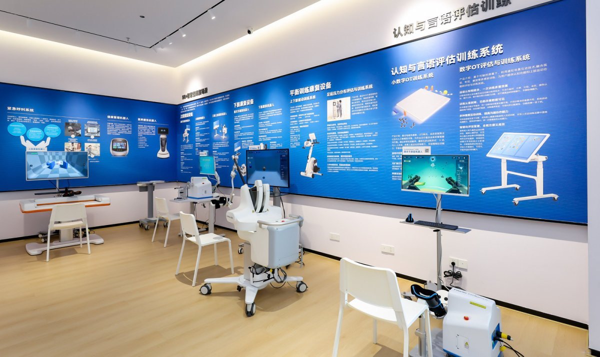 作为集展示、研发、应用于一体的公共技术服务平台,该中心创新构建了“一馆二院三创新”运作模式。其中,生命健康体验馆汇聚34家企业240件高端医疗设备及智能康养产品,为区内外生命健康企业及产品提供高规格的展示与体验窗口,高效助力企业研发创新成果的市场化落地应用;康复医院与养老院则作为“应用场景试验场”,将智能康复、智慧看护等前沿技术嵌入真实照护全流程,让科技创新在真实应用中迭代升级,让产业成果在民生需求中落地生根,树立起以场景驱动、科技赋能、产业引领的康复新范式,实现“楼下展示研发、楼上测试应用”的产业链闭环。