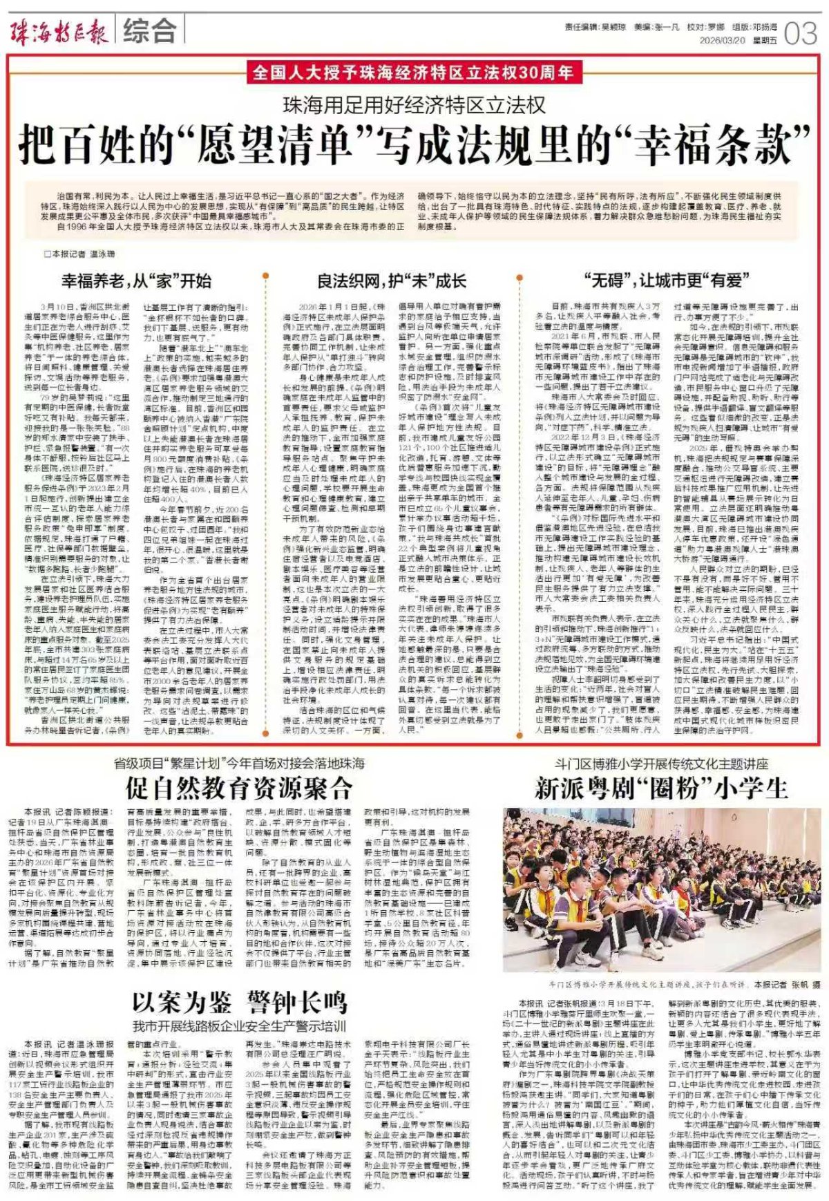 2026年1月1日起,《珠海经济特区未成年人保护条例》正式施行,在立法层面明确政府及各部门具体职责,完善协同工作机制,让未成年人保护从“单打独斗”转向多部门协作、合力攻坚。