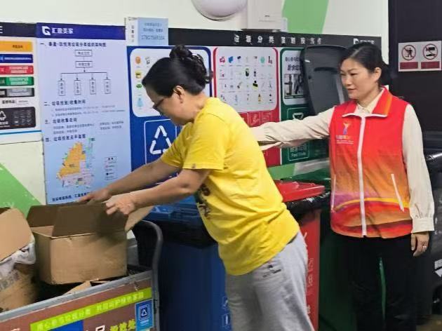 斗门区注重机制创新,白蕉镇探索“社区指导、学校组织、家庭参与”模式,通过“小手拉大手”组建“绿色联盟”开展桶边督导,以积分激励引导习惯转变。白藤街道、井岸镇则推行“以车代库+志愿服务”,专车进小区回收可回收物,志愿者现场协助称重讲解。目前,全区已累计开展志愿宣传556场,发动社会力量3700余人次。