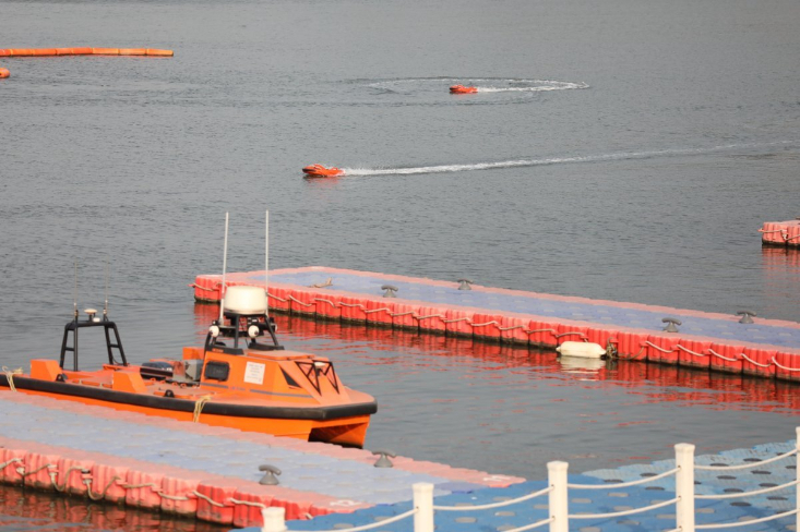 30日下午,颁奖仪式在“哪吒号”游船举行,嘉宾在甲板上观摩水下机器人的精彩演示。最终,西湖大学团队获巡检监测赛道一等奖,广东智能无人系统研究院(南沙)团队获精准作业赛道一等奖,广州灵鲛科技有限公司获企业组巡检检测赛道一等奖。