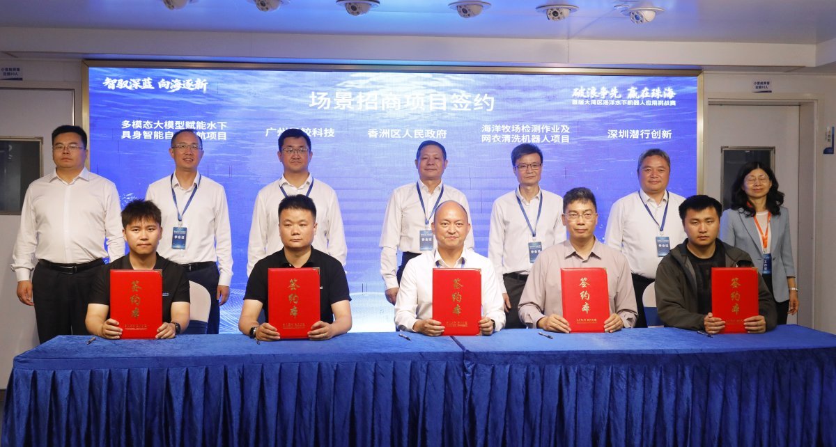 赛事期间,主办方发布1500万元的《海洋水下机器人应用场景机会清单》,叠加广东全省17个海洋牧场一级开发主体总额超过1亿元的潜在订单。颁奖仪式上,4支获奖团队与珠海市香洲区签署意向落地协议,悦禾渔业等龙头企业也与优秀团队达成初步合作意向。