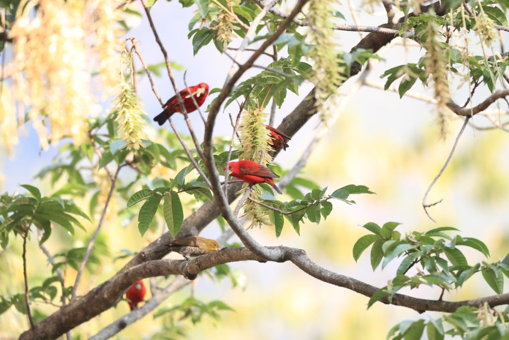 罕见!30余只血雀现身云南保山