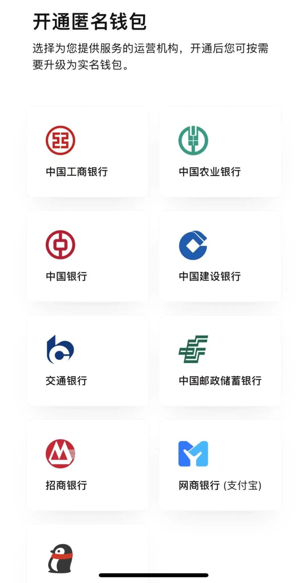 目前开放的运营机构包括工商银行、农业银行、中国银行、建设银行、交通银行、邮储银行、招商银行、网商银行(支付宝)、微众银行(微信支付)等,各个机构根据自身实际情况和风控能力在限额范围内设置具体限额。