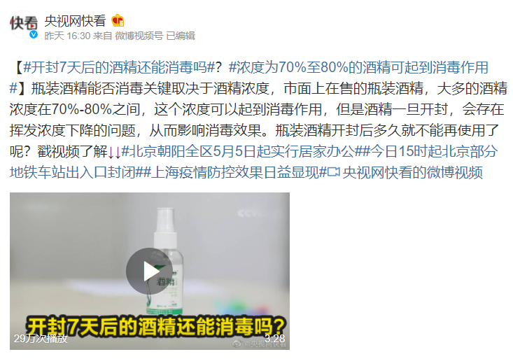 瓶装酒精能否消毒关键取决于酒精浓度,市面上在售的瓶装酒精,大多的酒精浓度在70%-80%之间,这个浓度可以起到消毒作用,但是酒精一旦开封,会存在挥发浓度下降的问题,从而影响消毒效果。瓶装酒精开封后多久就不能再使用了呢?戳视频了解。