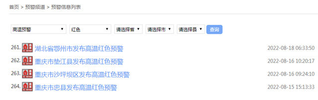 高温热浪仍在疯狂肆虐!截至今天(8月18日)14时30分左右,全国有264个高温红色预警正在生效中,重庆、四川两地的部分地区以41℃+的气温继续“领跑”全国气温排行榜!