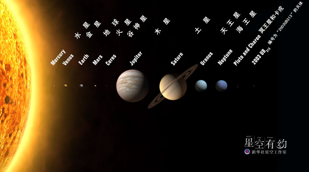 这张绘制图片显示了太阳系的12颗天体(含谷神星)。新华社发